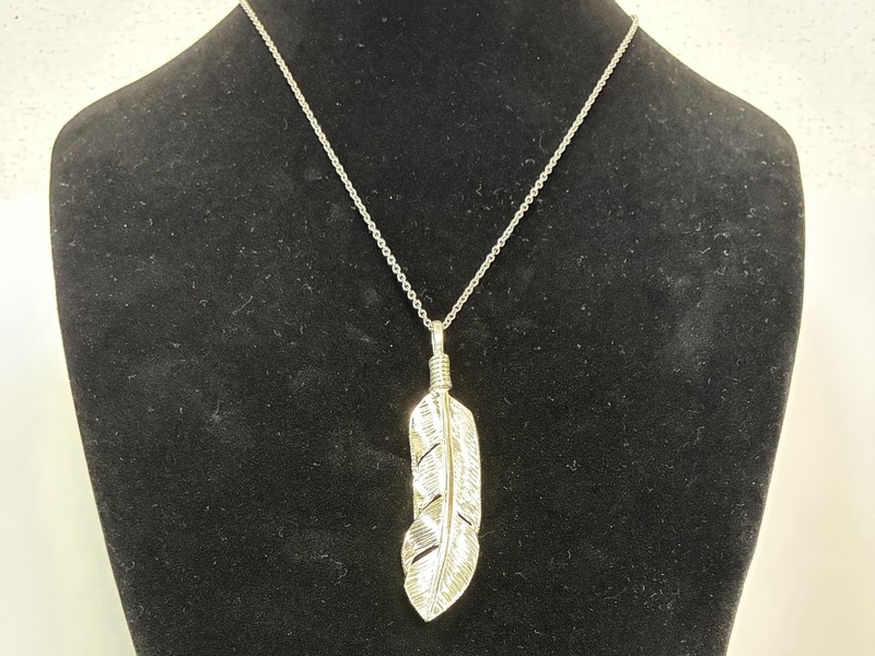 このフェザーペンダントトップは約15gと手に取るとズッシリと重さを感じますが、流れるようなラインと繊細な彫りによって、羽根の軽さ、躍動感と柔らかさをリアルに表現しています。
