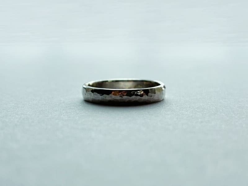 職人がハンマーで丁寧に叩き出した、温かみある槌目模様が特徴のシルバーリング。