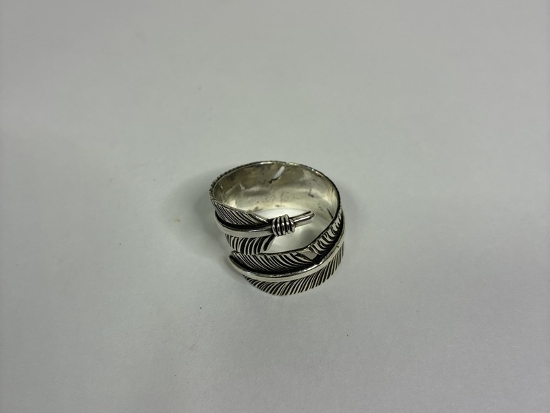 インディアンジュエリーの中でも人気の「羽根」をモチーフにした、上品で存在感のあるフェザーリングです。